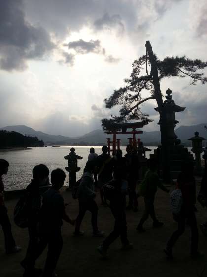 連絡船にて,宮島に着きました。ホテルで夕食をとった後,楽しみにしている買い物に出かけます。