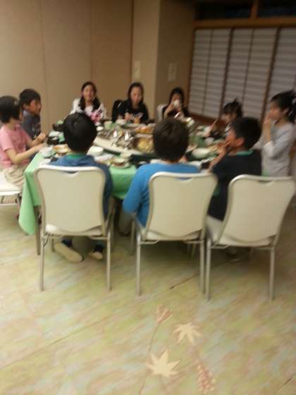 皆で円卓を囲んでの夕食。美味しくいただきました。