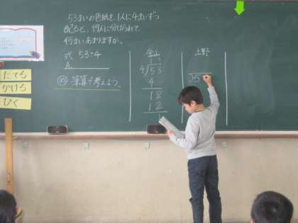 算数「1けたでわるわり算」では,筆算の学習しています。