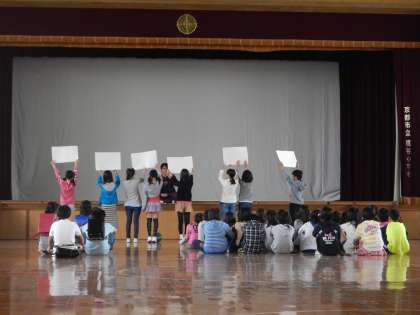 1年生のお迎え集会に向けて,体育館で最後の仕上げをしました。