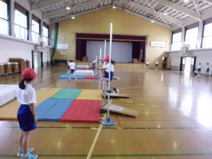 体育科では,「高とび」の学習をしています。
