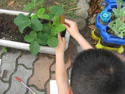 理科の学習で育てているひまわりと大豆の観察をしました。