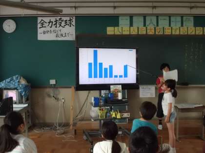 11日(水)の授業では,アンケート結果から分かったこと,考えたことなどをグループごとに発表しました。