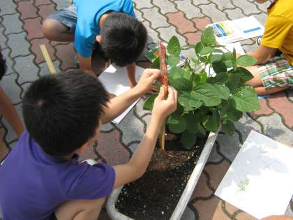 大豆は,なんと実ができてきました!「ちっちゃくてかわいい」「実にも毛がある」等々,前回と比べて,違いを見付けることができました。