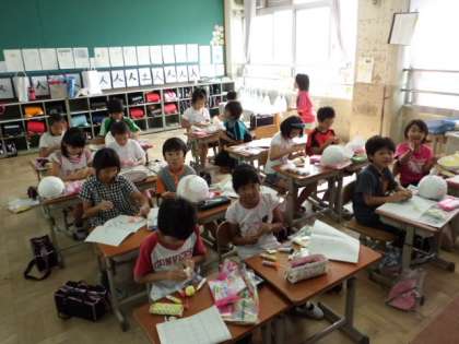 紙粘土に絵の具を混ぜて色を作り,それぞれ形を作っていきます。