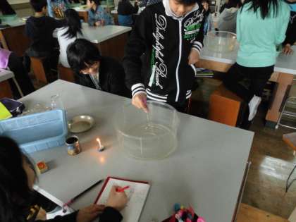 火を使う実験に6年生もおそるおそるでしたが,集中して観察をすることができました。