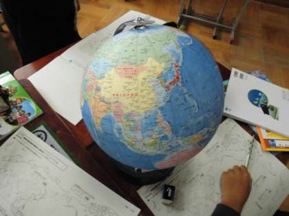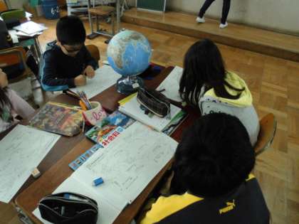5年社会科「わたしたちの国土」で,地球儀を使って,