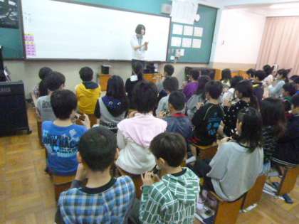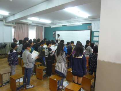 まず,4年生で習ったリコーダー曲「エーデルワイス」を2つのパートに分かれて演奏しました。音の出し方に気をつけて演奏していました。