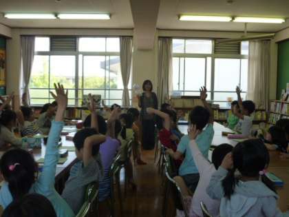 図書館支援員の田原先生による図書館オリエンテーションを行いました。
