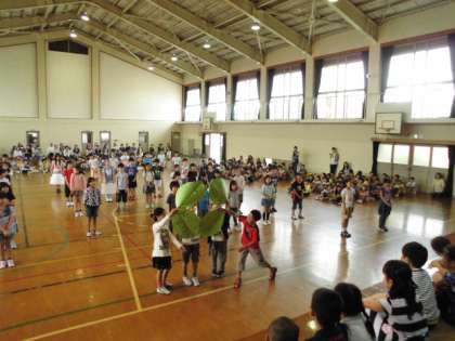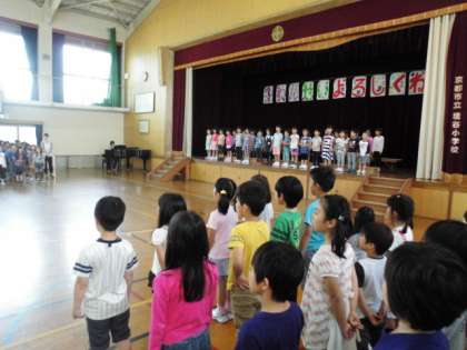 「かわらないもの」の全校合唱から始まり,各学年から,1年生に歌やダンス・言葉などが贈られ,1年生の子どもたちは,喜んでいました。
