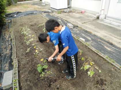 5月18日,19日にサツマイモの苗を定植してから,5年生は,毎朝,水やりをがんばっています。