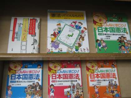 図書室の前にも,憲法に関する本や新聞記事が並んでいます。