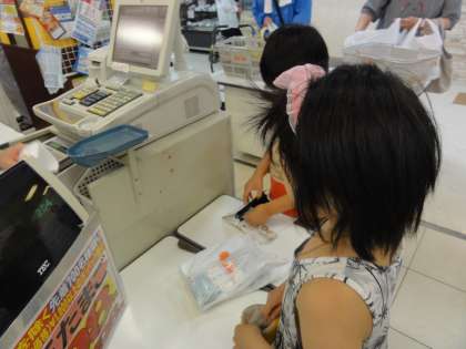 レジでは,店員さんの丁寧な対応に子どもたちは思わず、、、