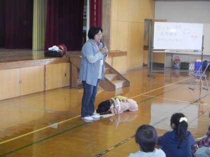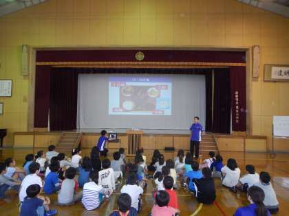 わかさ生活・関西盲導犬協会の方々による「ひとみ元気教室」を行いました。視覚障がい者の一日の生活について,パワーポイントをもとにお話を聞いたり,手引きの仕方を知ったりしました。その後実際に全員が手引きを行いました。子どもたちは少し緊張しながらも,丁寧に手引きすることができました。また,盲導犬とともに「盲導犬に出会ったら」という学習を行いました。静かに「待て」の姿勢で話を聞いている盲導犬に子どもたちは感心していました。学習以外の給食時間・休み時間・掃除時間も視覚障がい者の方と一緒に過ごす中で,子どもたちは自然に声をかけたり,手を差し伸べたりしていました。