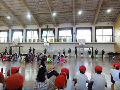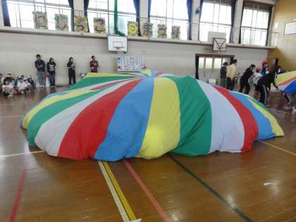 毎年,洛西地域の育成学級,西総合支援学校の小学部,開催校の4〜6年生と一緒におこなっている行事です。当日は,「てとてとてと」「じゃんけん列車」「デカスカリレー」「バルーン」をして交流しました。たくさんの子どもたちと交流でき,子どもたちは,とても楽しそうに活動していました。お天気にも恵まれて,帰りはどんぐりや落ち葉をひろい「秋見つけ」をして帰りました。良い思い出になりました。