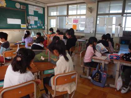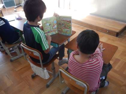 2年生に喜んでもらえるよう,一生懸命本を読む4年生,とっても良い時間になりました。
