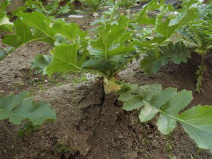 土から出ている部分が多くなってきました。とても大根らしくなってきました。