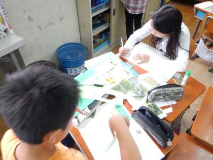 先日行った「春みつけ」をもとに,自分でテーマを決めて生き物マップを作りました。見つけた生き物の特徴をもとに,名前を探したりまとめたりしていきました。今後も工夫を重ねてよりよい生き物マップを作りたいと思います。