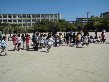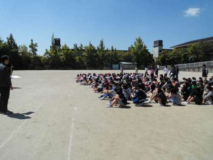 9:55に放送が始まると,それまで聞こえていた子どもたちの声が消え,静かに放送を聞くことができていました。その後,担任を先頭に,ハンカチを口にあてながら,『おはしもて』を守って運動場へ避難することができました。