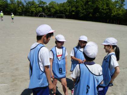 体育の学習で,リレーに取り組んでいます。チームでバトンの渡し方や走る順番などを相談し,どうすればスムーズにバトンが渡るかを考え,練習して競争に臨みました。これからチームで相談や練習を重ねて,成長していくのが楽しみです!