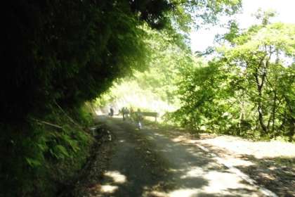 山道になるまでの大原野の風景は畑が多く自然を満喫しながら元気いっぱい歩いていました。ちょっと急な坂道もがんばって歩きました。
