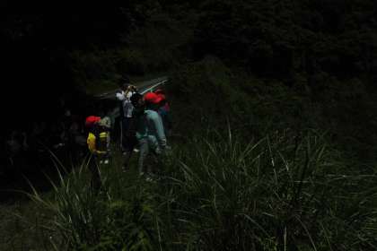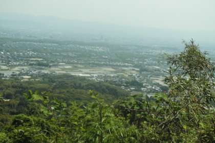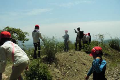 急な坂を何度も曲がりくねって,ちょうどカーブのところが開けて京都の町並が見えるところまでやって来ました。素晴らしい光景にみんな思わず「すごーい!」「ヤッホー」と大騒ぎでした。