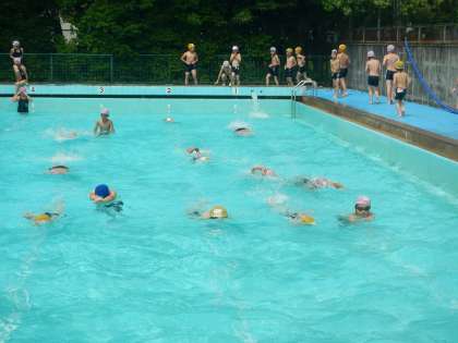 1年ぶりの小学校のプールを満喫しながら,自分の泳ぎ方を確かめました。