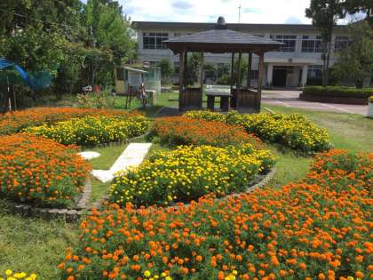 学校にお越しの際には,是非,校章園のマリーゴールドをご覧ください。