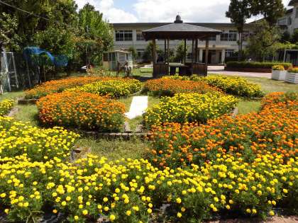 長かった夏休みも終わり,今日から前期の後半がスタートしました。満開のマリーゴールドが子どもたちを迎え,子どもたちの元気な歓声が学校に戻ってきました。