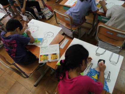 思い出を絵に描いています。