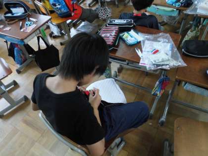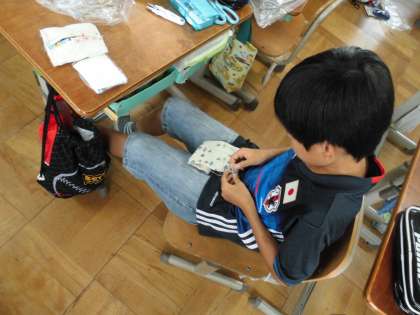 5年生家庭科の学習で裁縫をしています。