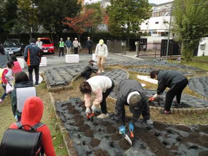 1年生が定植しやすいように,地域の方々が,