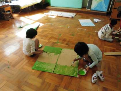 今日は,劇で使う「草むら」を作るために,