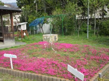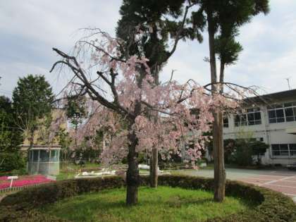しだれ桜が咲き続けています。もうそろそろ葉桜になろうとしているころです。シバザクラの花もきれいに咲き始めました。校章園のパンジーは,もうすぐマリーゴールドにお色直しをしますが,まだまだ咲き誇っています。