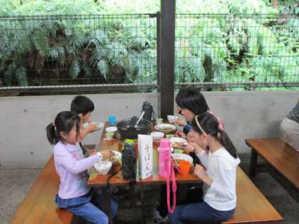 夕食は野外炊事です。すき焼き風煮です。おいしくいただきました。