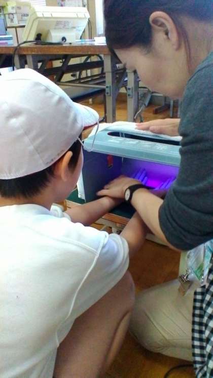 先日の体重測定と共に,保健室で手洗い指導をしていただきました。