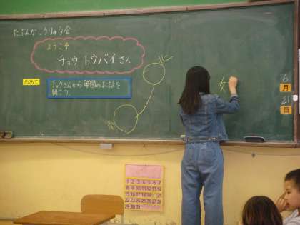 6月21日(水)3・4校時に「多文化交流会」をしました。竹の里小学校では,この取組を5代目の鈴木留美子前校長先生から実施されているということです。もう,20年以上になるだろうと思われます。素晴らしい取組が,継続されています。今年度も地域の方にお世話になり,アメリカ合衆国,中華人民共和国,イタリア,シンガポール,ベトナム,ミャンマーの方々をお招きすることができました。
