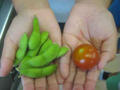 ひと雨ごとに,野菜がぐんぐん成長しています。ミニトマトもピーマン,枝豆も食べ頃になっています。自分で育てた野菜は,きっと心に残る味でしょう。
