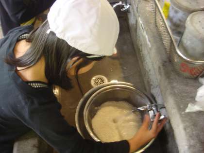 さあ,お米を洗いはじめています。
