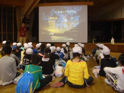 たいへん雲が厚く,今日の天体観測はできませんでした。ホールで春の星座のDVDをみせていただいています。