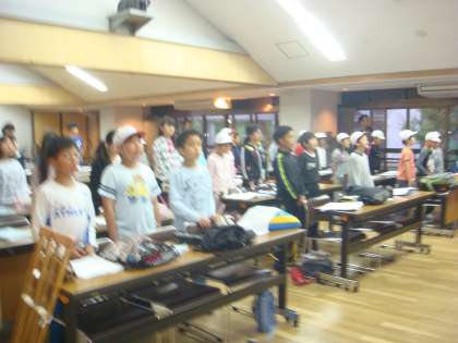 山の家の方から「発表をしてくれる方どうぞ!」順番が決まっているわけでなく,自ら手を挙げた学校からということです。