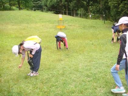 14:00からスタートした自然観察。まずはじめに,鹿のふんの下に隠れているふんころがしを見つけること。そして,白つめ草の4つ葉のクローバーを見つけることから始めました。