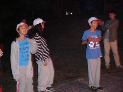 19:20,火の神様が降臨されました。この火は,活動の1日目に「火おこし」をした火です。その火が,子どもたちの活動をずうっと見守ってくださっていたのです。そして,火の使いに火を授けられました。