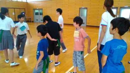最後は武道場にて『尻尾取りゲーム』さすがは中学生!すごい気迫で尻尾を取りに来るので,必死になって逃げました。