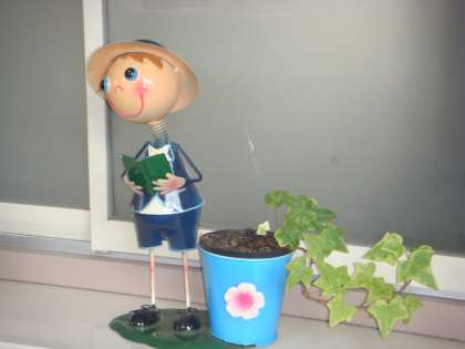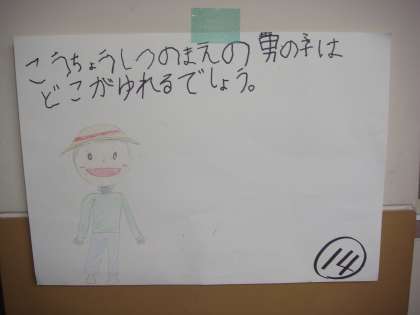 校長室前にある人形をちょこっと触っていきながら答えている子どもたちです。