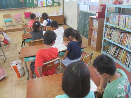 長い夏休みが終わりました。絵日記を見せながら,夏休みの思い出を話しました。お友達のいろいろな絵日記を見て,お互いの楽しい思い出に話が盛り上がりました。