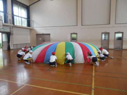 今日は初めての練習でしたが,息ぴったりでバルーンがとてもきれいに見えました。次回は運動場で挑戦します。