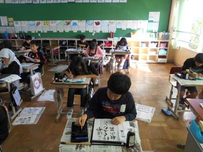 小筆は普段,名前を書く時くらいしか使わないので,苦戦をしている子も多かったように思います。字が大きくなりすぎないように,また,筆の穂先を使って書くことを意識して頑張りました。