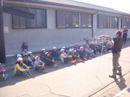 「かご漁」ってどのようにするのかなと思っていたのです。もう10回以上来て子どもたちと活動している私ですが,体験したことがないのです。お話を聞くと,始まってまだ2年目だそうです。なるほど納得です。