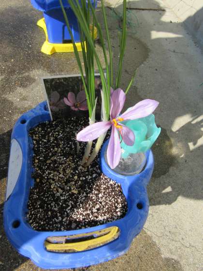 なかなか花が咲かないので,学校の畑の横にお引っ越し。